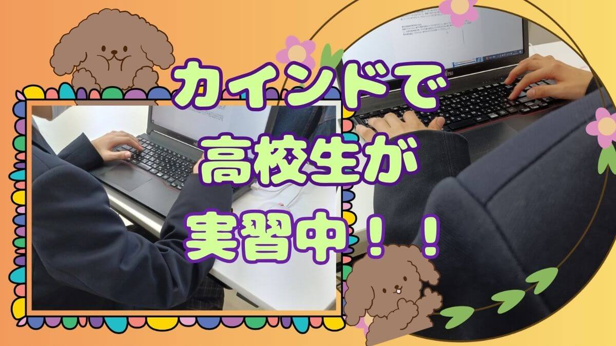 きょうは、カインドでの研修2日目ということでまだ少し緊張気味ですが、質問にもにこにこ丁寧に答えてくれる、とても礼儀正しい生徒さんです。