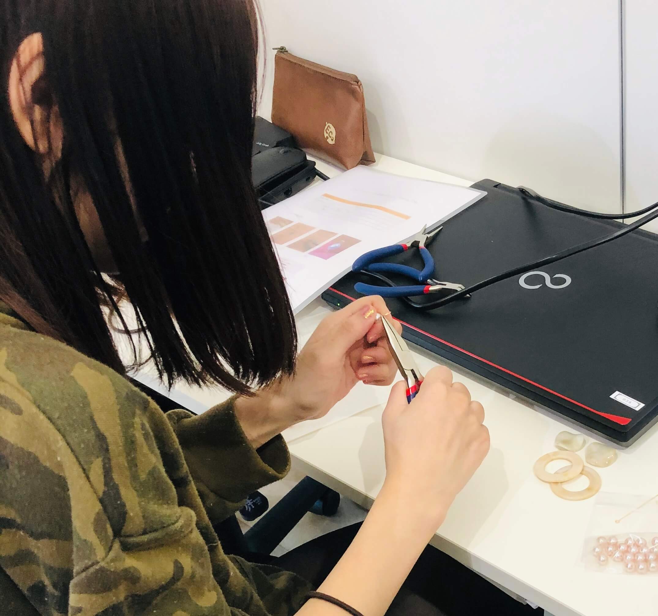 こんにちは。カインド利用者のSです。カインドではハンドメイドアクセサリーの制作をしてます。現在、製作がスタートしてから約1ヶ月が経ちました。初めて作った時は道具がようになりました。